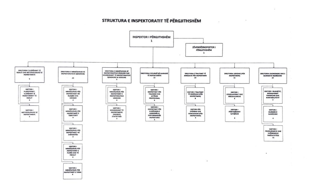Ristrukturimi i inspektorateve ndodhet në një fazë delikate dhe vendimtare dhe për këtë qëllim Inspektorati i Përgjithshëm, përmes ngritjes së grupeve të posaçme të punës, do të ofrojë të gjithë asistencën e nevojshme për të garantuar mbarëvajtjen e këtij procesi, për krijimin e strukturave optimale në ushtrimin sa më efektiv dhe eficient të veprimtarisë inspektuese.